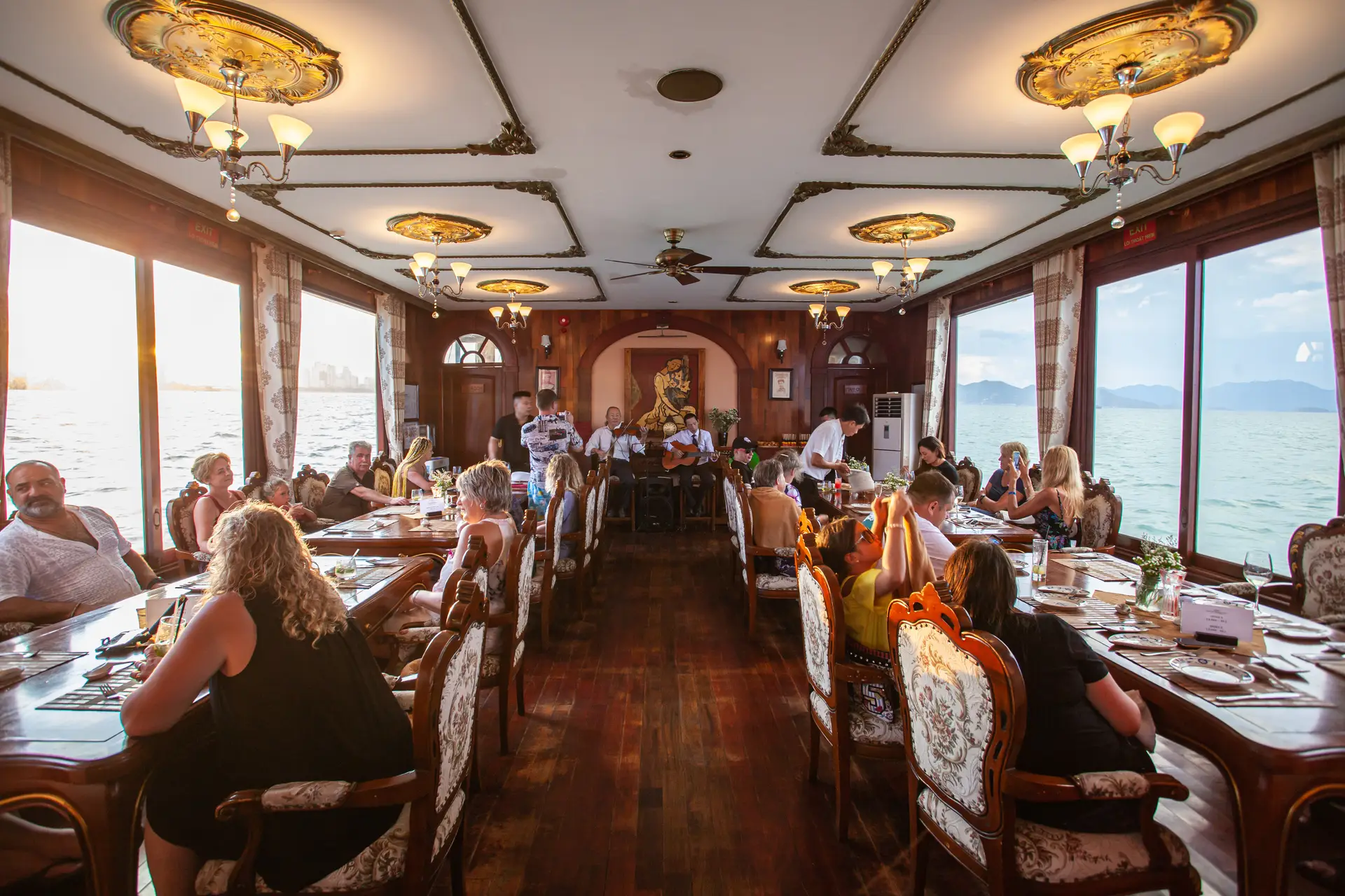 Here’s what you can expect: Cruise past small islands like Hon Mun and Hon Tam, with the golden light reflecting off the water. Many cruises offer dining, live music, and drinks, creating a festive atmosphere.