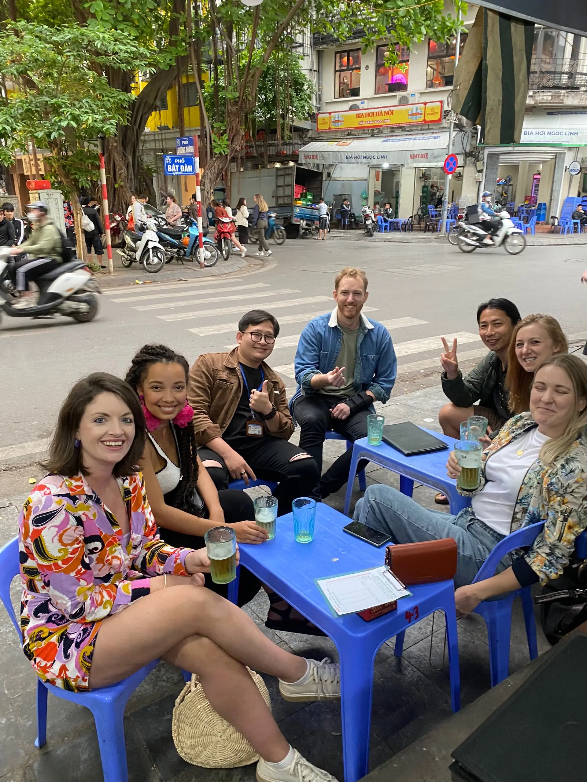 Arrived at the 3rd location, a great Bia Hoi spot with an view of famous train street