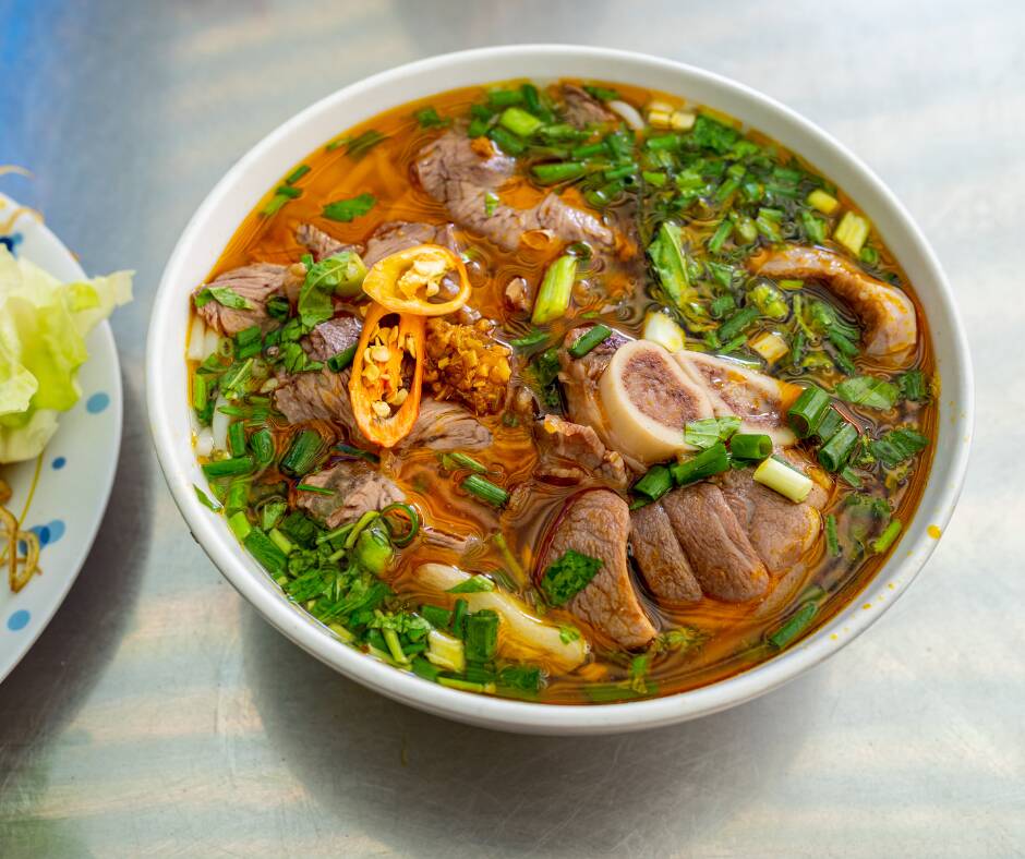 If there’s one dish that screams Hue, it’s Bún Bò Huế. This bowl is a perfect blend of spicy, savory flavors, with tender beef slices, silky rice noodles, and a flavorful broth infused with lemongrass and chili. Don’t forget to squeeze in a bit of lime and toss in some fresh herbs, it’s the perfect balance of richness and freshness.